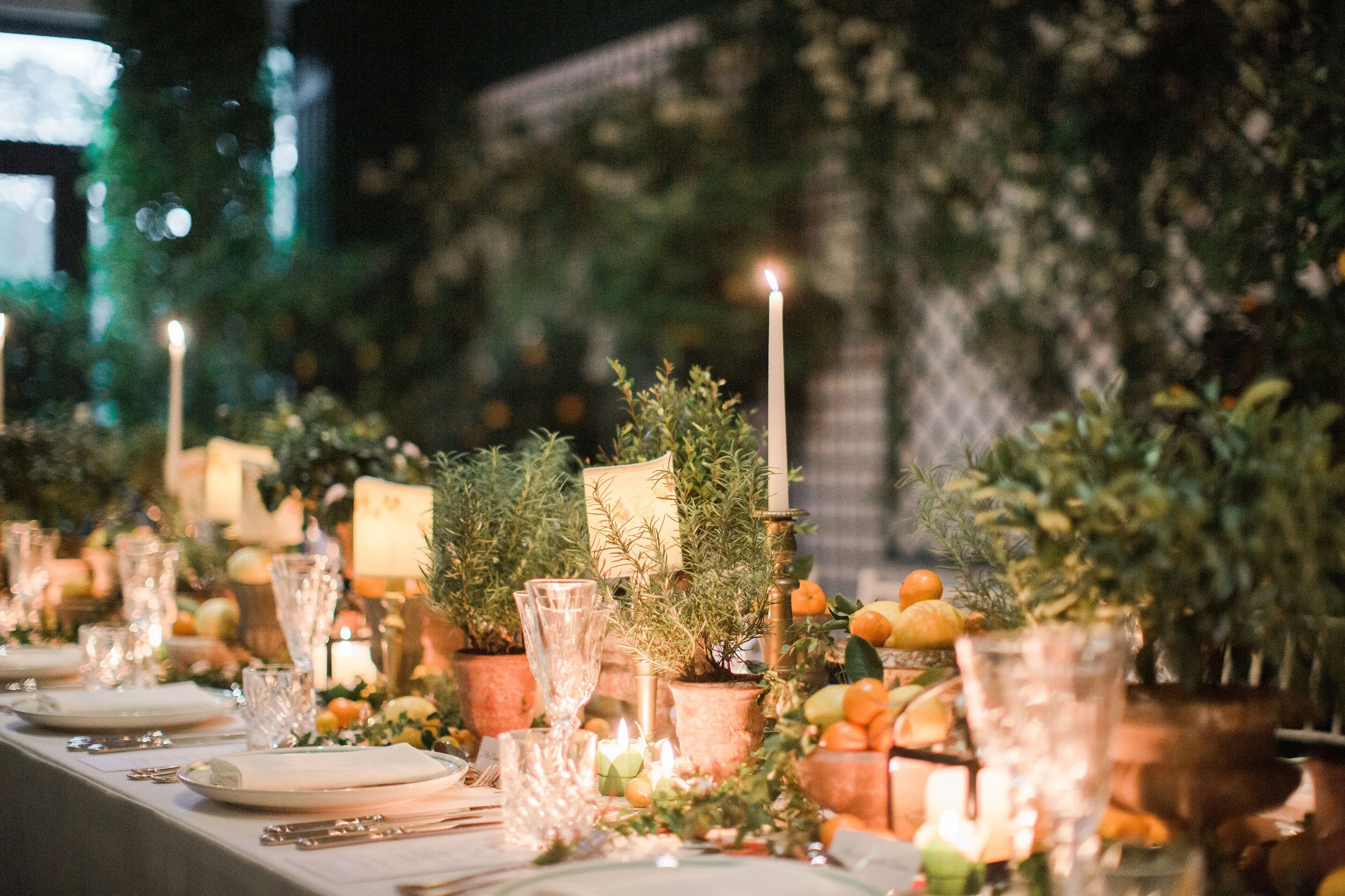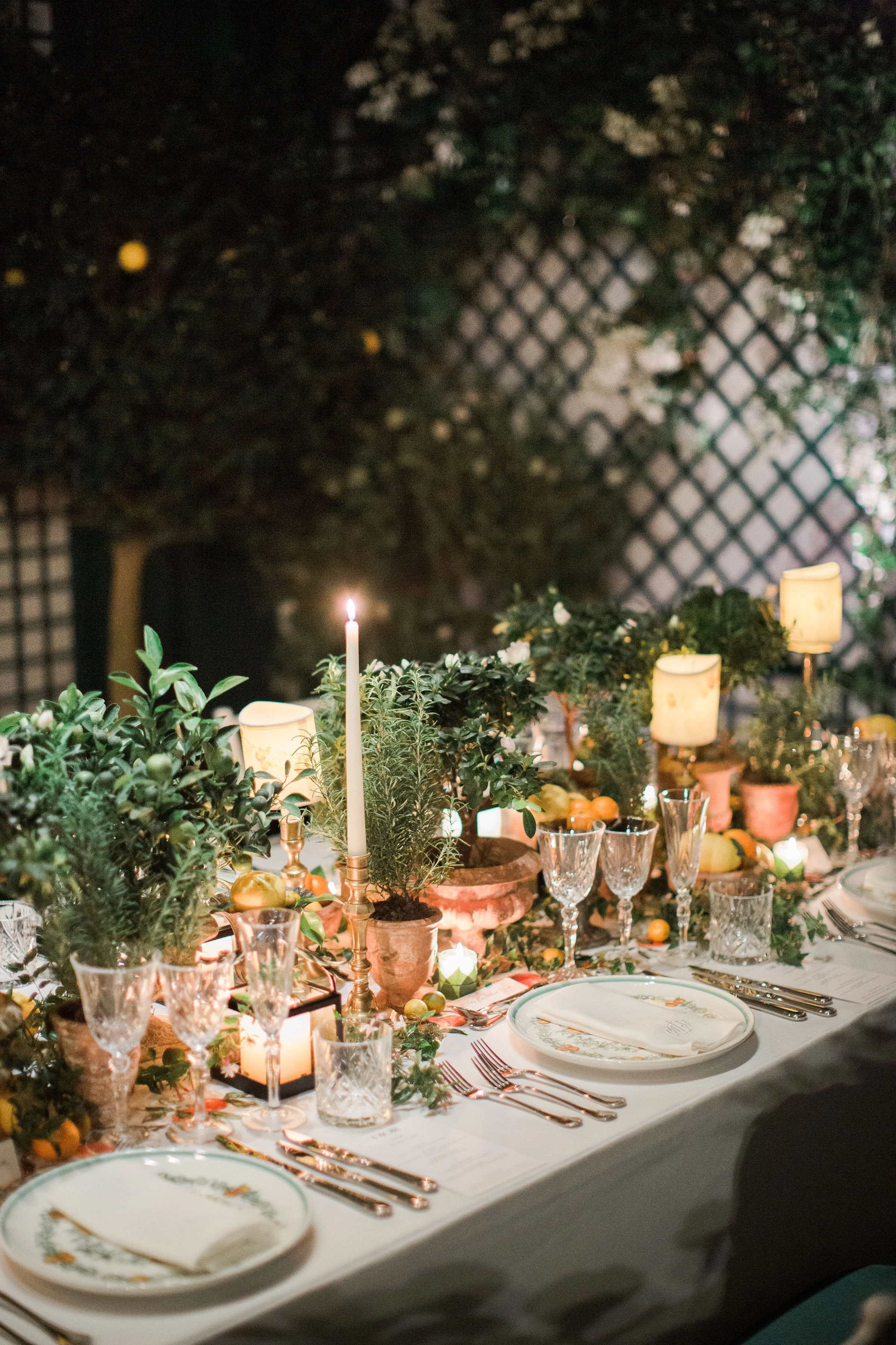 Private residence styling for Christian Dior with garden potted plants, and long table garden theme styling using potted rosemary, jasmines, and built up of bougainvillea & jasmine treillage around the whole venue using fresh florals. Salal, citrus and tangerines.. and the elegant tableware from Dior Maison and potted ceramics from France. It was truly a collective memory for the team.